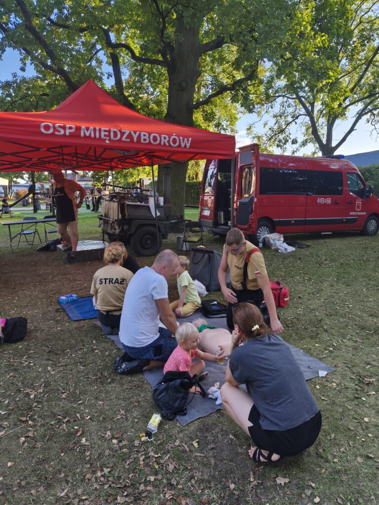 - strażacy z OSP Międzyborów pokazali, jak udzielać pierwszej pomocy i częstowali pyszną grochówką, a OSP Skuły urządzili wspaniałą zabawę dla dzieci i dorosłych,