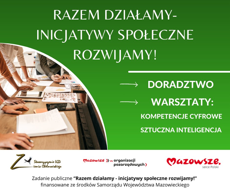 Ruszamy z realizacją projektu „Razem działamy – inicjatywy społeczne rozwijamy!”, który jest finansowany ze środków Samorządu Województwa Mazowieckiego.